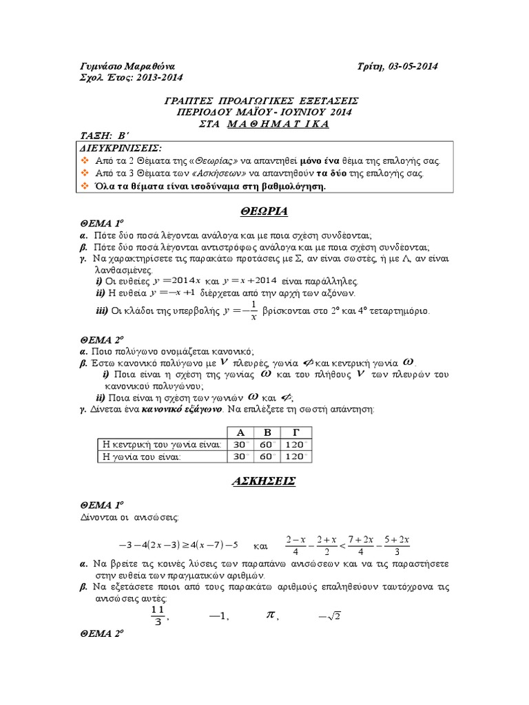 2376 64 θέματα προαγωγικές εξετάσεις μαθηματικών β' γυμνασίου. Γράψε μια αξιολόγηση για το θέματα μαθηματικών και βοήθησε σημαντικά τους άλλους χρήστες! Βοηθηματα μαθηματικων στ δημοτικου tags: Συμβολή στην επίλυση γραμμικού συστήματος με την μέθοδο απαλοιφής του gauss. Στη σελίδα αυτή θα αναρτώνται καθημερινά καθ΄όλη τη διάρκεια των εξετάσεων τα θέματα, οι λύσεις τους και ο.